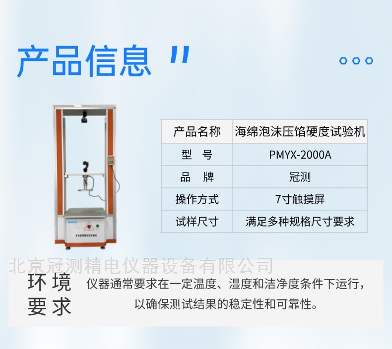 压陷硬度测试仪-主要适用于软质泡沫聚和材料如:海绵、泡沫等压陷硬度在国家标准要求的A法、B法、C法及其它试验条件下对标准尺寸的海绵、泡沫等试样进行标准的测试,测定海绵、泡沫等材料的凹入硬度指数、凹入硬度特性、凹入硬度检验以及压缩应力的测试。