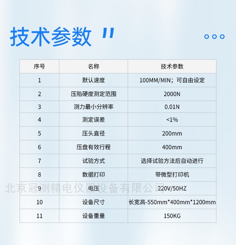 1、 压陷量预先设定,通过计时电路精确控制压陷量;