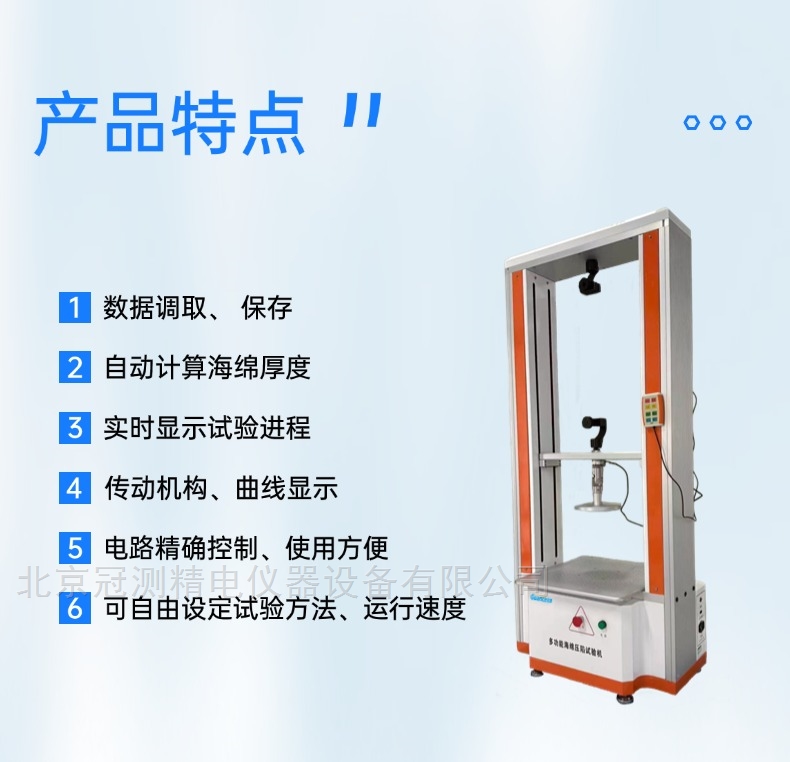 6、 厚度测量:能够自动计算显示所测试海绵厚度;