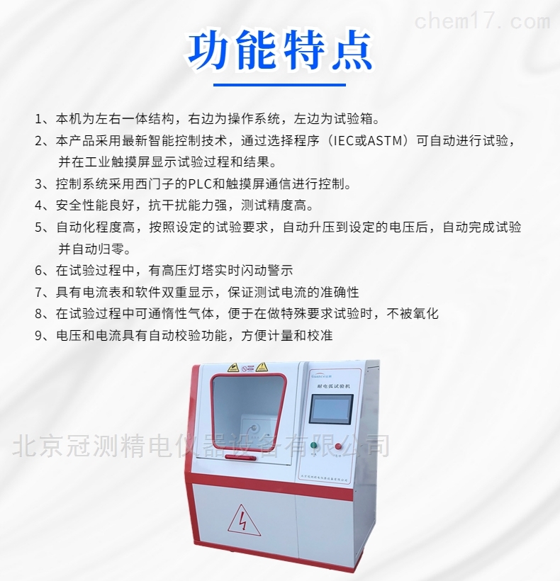 2 本产品采用最新智能控制技术,通过选择程序(IEC或ASTM)可自动进行试验,并在工业触摸屏显示试验过程和结果。
