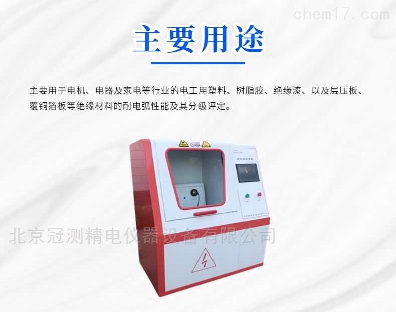 主要用于电机、电器及家电等行业的电工用塑料、树脂胶、绝缘漆、以及层压板、覆铜箔板等绝缘材料的耐电弧性能及其分级评定。