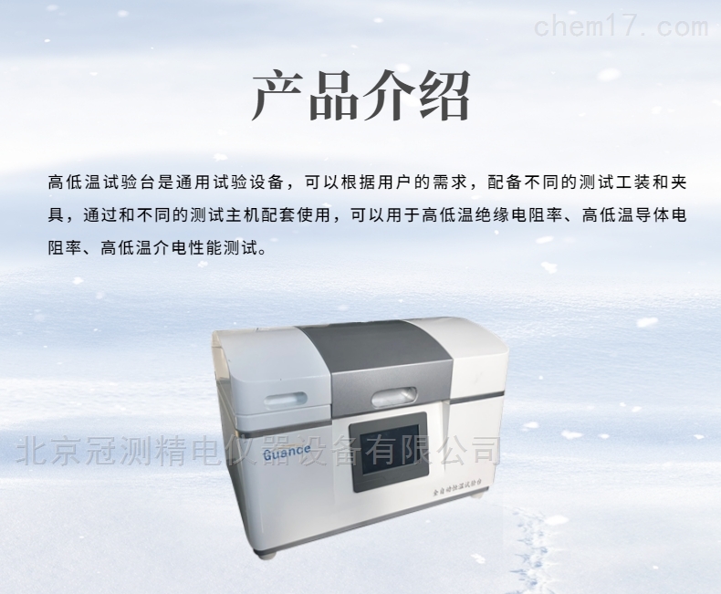 高低温试验台是通用试验设备,可以根据用户的需求,配备不同的测试工装和夹具,通过和不同的测试主机配套使用,可以用于高低温绝缘电阻率、高低温导体电阻率、高低温介电性能测试。