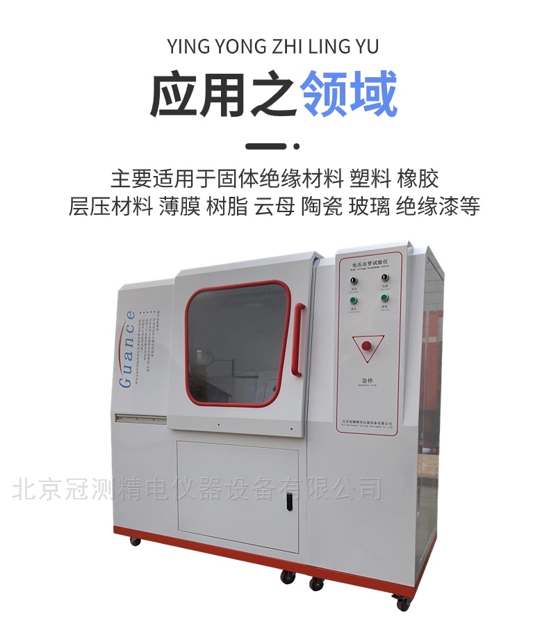 电压击穿试验仪-主要适用于固体绝缘材料(如:塑料、橡胶、层压材料、薄膜、树脂、云母、陶瓷、玻璃、绝缘漆等绝缘材料及绝缘件)在工频电压或直流电压下击穿强度和耐电压的测试。