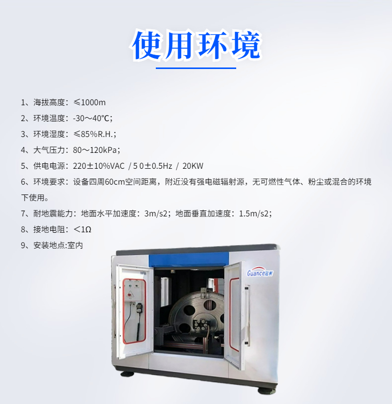 6、环境要求:设备四周60cm空间距离,附近没有强电磁辐射源,无可燃性气体、粉尘或混合的环境下使用。